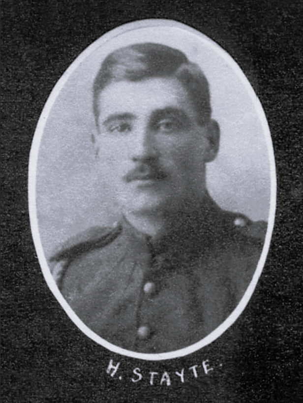 He was born in Hixet Wood, Charlbury to parents John and Lavinia Stayte, his father dying in 1903. He was then a resident at the Boys Home in Swansea House, Kingham Hill. His mother remarried Frederick Bond in Kings Norton, Birmingham and he then joined them, living in Kings Heath, Birmingham. He was working as a paper maker when he enlisted into enlisted into the Territorial 6th Battalion of the Royal Warwickshire Regiment on 15th November 1915. However he was discharged on 27th March 1916 under King's Regulations para 392 iii cc, being unfit for further duty after three months service.