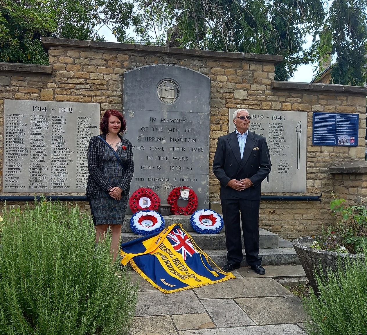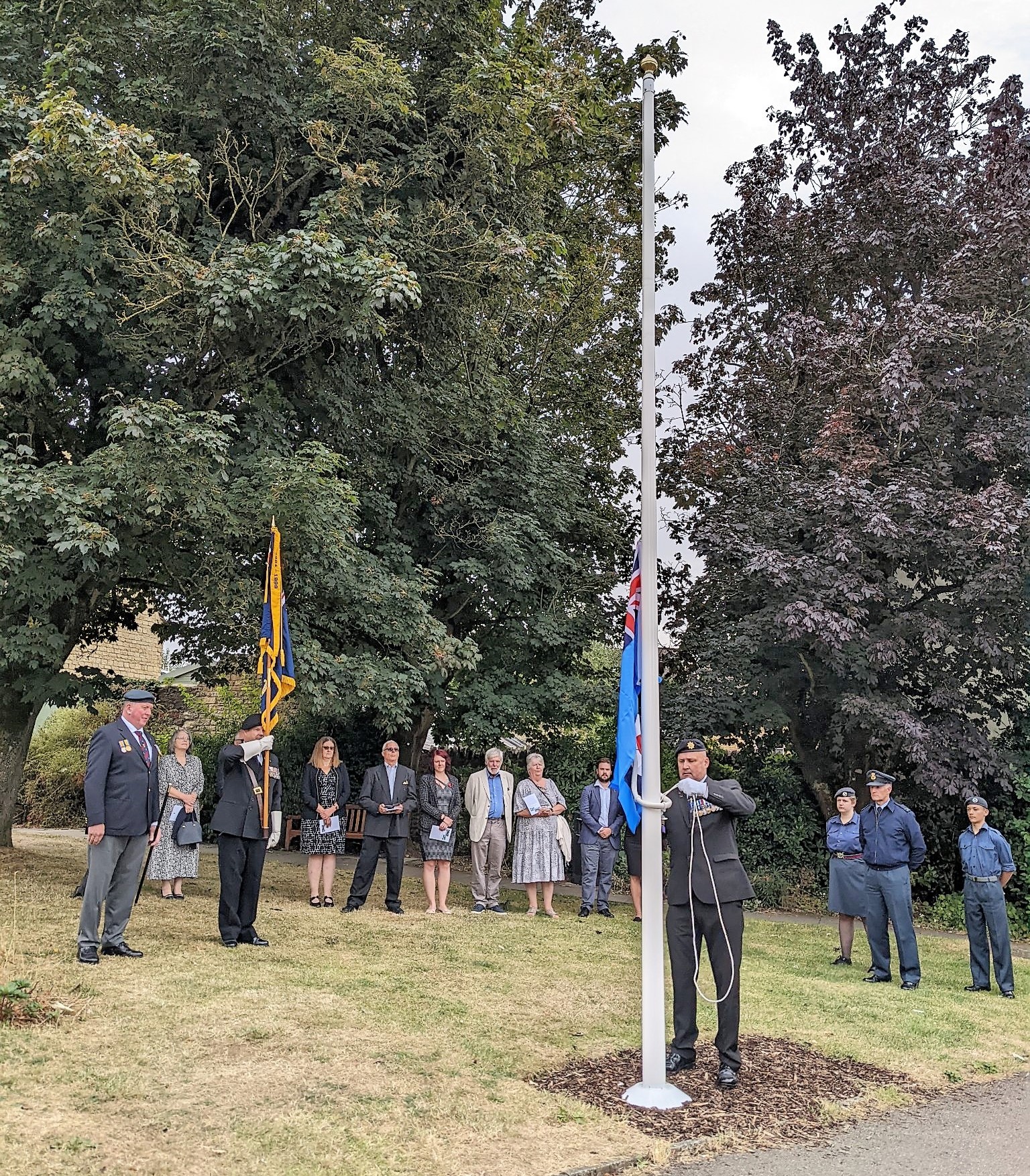 On Sunday 21st August 2022, The Royal British Legion, Chipping Norton held a service of Remembrance to mark the 8oth Anniversary of the mid-air collision over the town in 1942. We were delighted to welcome Deputy Lieutenant of Oxfordshire Mr Ron Spurs, the families of Pilot Officer Ian Henderson, pilot of the Wellington and of Sergeant Stanley Downs, pilot of the Oxford to the event. Members of the Legion branch, Town Councillors, Reverend Victor Story and Pilot Officer McCann and cadets from 136 (Chipping Norton) Squadron were also present. The commemoration started with the raising of the RAF Ensign on the town's flagpole.