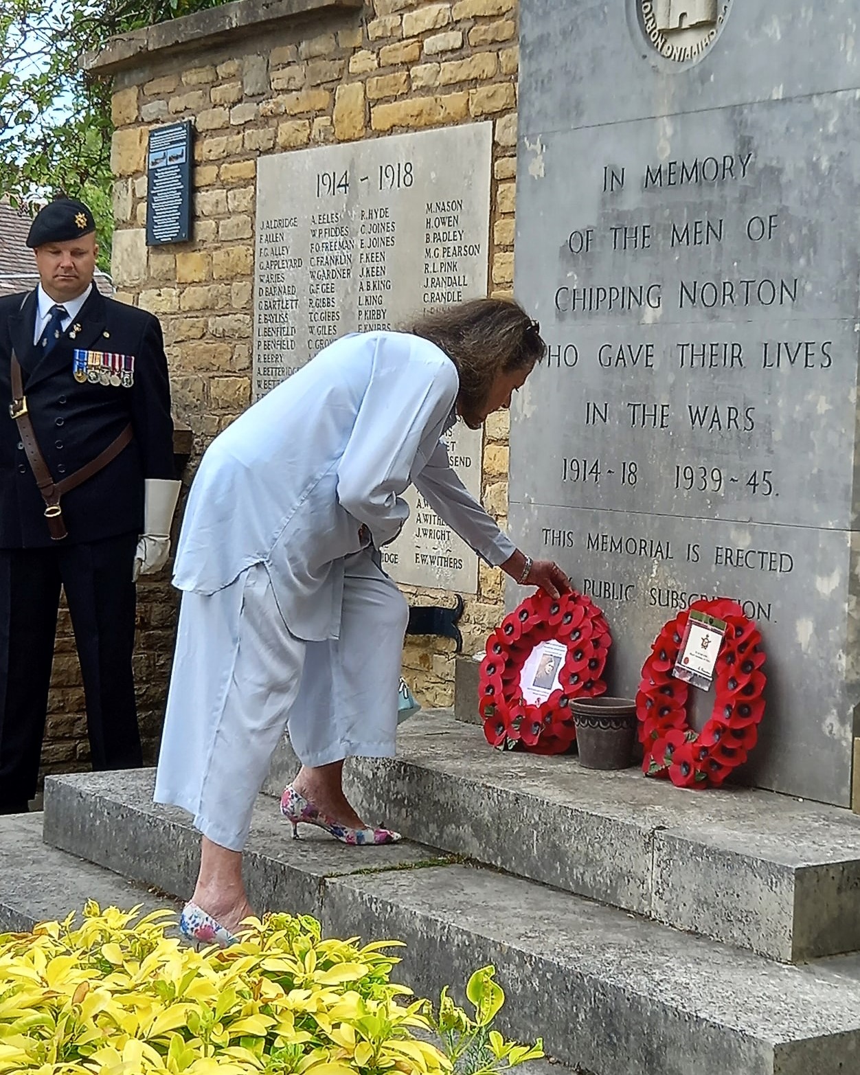 In a short but moving ceremony, organised by the branch, the story of the incident was read by John Grantham, accounts of eyewitnesses by Alec Corfield and Linda de Silva, from The Crown & Cushion, and the poem “High Flight” recited by Steve Kingsford. The service was conducted by the Vicar of St Mary's Canon Stephen Weston with prayers from Canon Robin Howard and a reading from Isaiah 40 by Rev Bernard Rumbold RAF rtd, a blessing and hymns. Fittingly the final hymn was “God is my strength and refuge” to the tune of the “Dambusters”. The memorial was attended, amongst others, by a contingent of serving airmen from RAF Brize Norton lead by Squadron Leader David Marsh. The Royal Australian Air Force was represented by Flight Lt. William Harwood RAAF who subsequently laid a wreath on the grave of Sergeant Rankin at Little Rissington war cemetery. After the service the congregation proceeded to the blue memorial plaque in Church Street for the laying of wreaths followed by a blessing, the Last Post, a minutes silence, Reveille and the Kohima exhortation. Wreaths were laid by the Deputy Lord Lieutenant of Oxfordshire on behalf of Her Majesty the Queen, the Mayor of Chipping Norton, Squadron Leader Dave Marsh on behalf of the RAF, Flight Lieutenant Will Harwood of the Royal Australian Air Force and representatives of the Thames Valley Police, Royal British Legion Chipping Norton Branch and Women's Section and 136 Squadron Air Cadets. Refreshments were then taken at the Crown and Cushion Hotel.