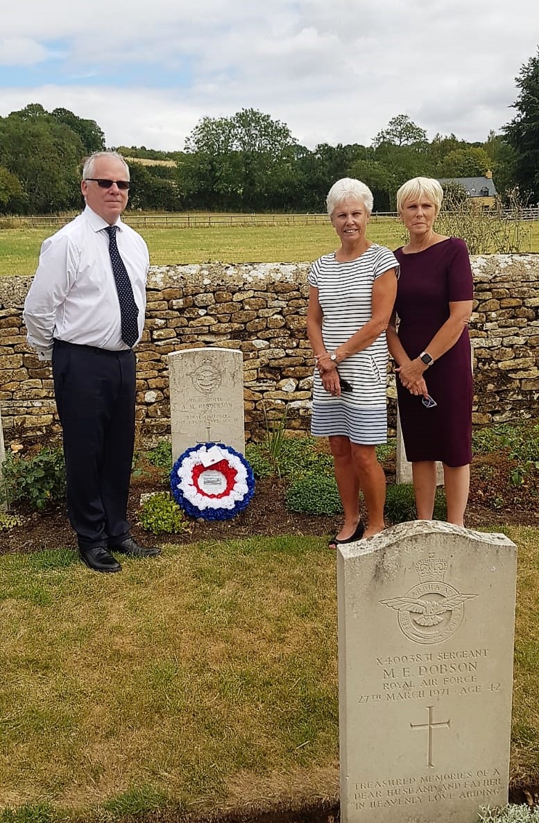 Trevor and the chairman later met the family of Pilot Officer Ian Henderson met at Little Rissington churchyard, where their relative is buried. After laying a wreath on his grave, we showed them around the beautiful church.