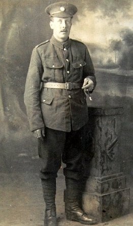 He had enlisted into The Royal Field Artillery in Stratford-upon-Avon before being transferred to the 5th Battalion, The Duke of Edinburgh's Wiltshire Regiment as a Private. He joined them in Gallipoli on 16th November 1915 , the Battalion being at Suvla Bay at the time. They were evacuated from Suvla Bay to Helles bridgehead on 19th December 1915. On 7th January 1916 they fought against the last Turkish attacks on the garrison at Cape Helles before being evacuated to Egypt on the 8th and 9th of that month.