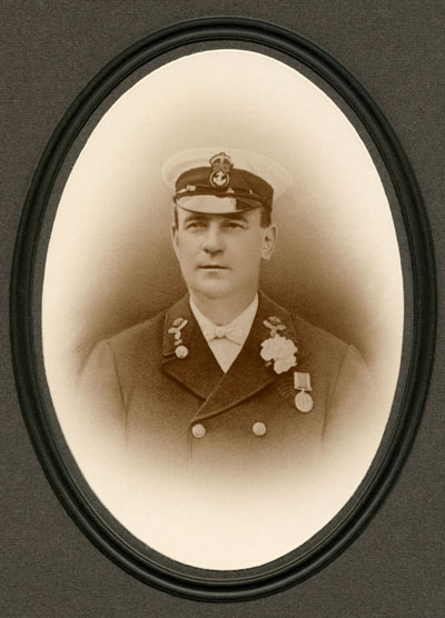 He returned home in April 1908, his last posting being to the cruiser HMS Endymion in 1909 before retiring to the Royal Navy Reserve in Chatham on 21st May 1910 after 22 1/2 years service.
