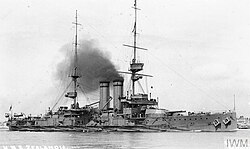 He was born in the son of George and Amy Bowell of Steeple Aston. After the death of his father in 1908, his mother moved with him to Bath where she worked as a housekeeper. Je was working as a machinist in a corset factory when he enlisted into the Royal Navy in Portsmouth on 13th August 1913 in Portsmouth. He signed on as a Boy 2nd class for 12 years and trained at HMS Impregnable and HMS Ganges. He joined the pre-dreadnought battleship HMS Albermarle on 8th January 1913 as a Boy 1st class. He then transferred to HMS Bulwark, another pre-dreadnought battleship in May 1913, being made up to an Ordinary Seaman in August that year. He left her to join HMS Zealandia, below, a King Edward VII battleship on 19th August 1913.